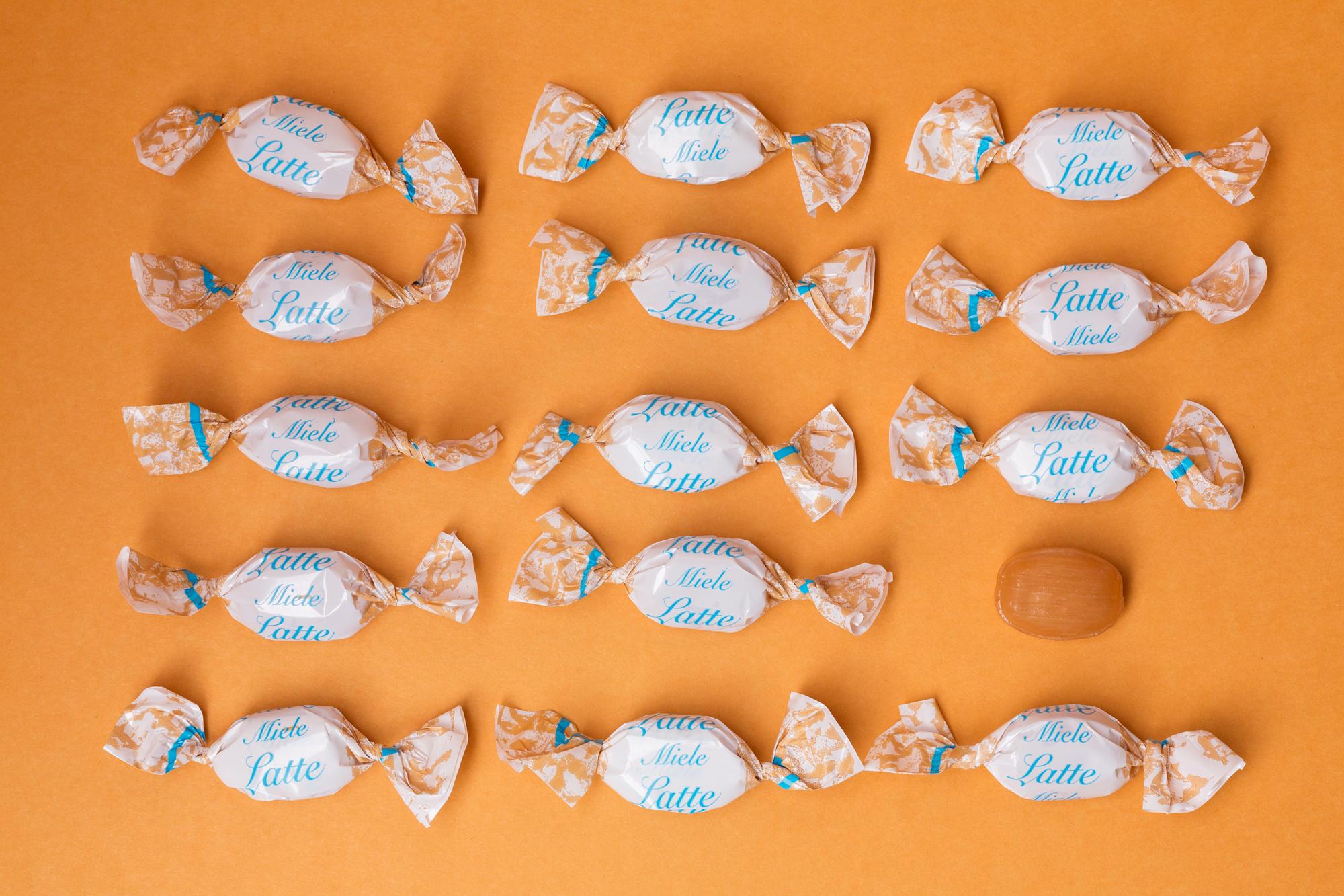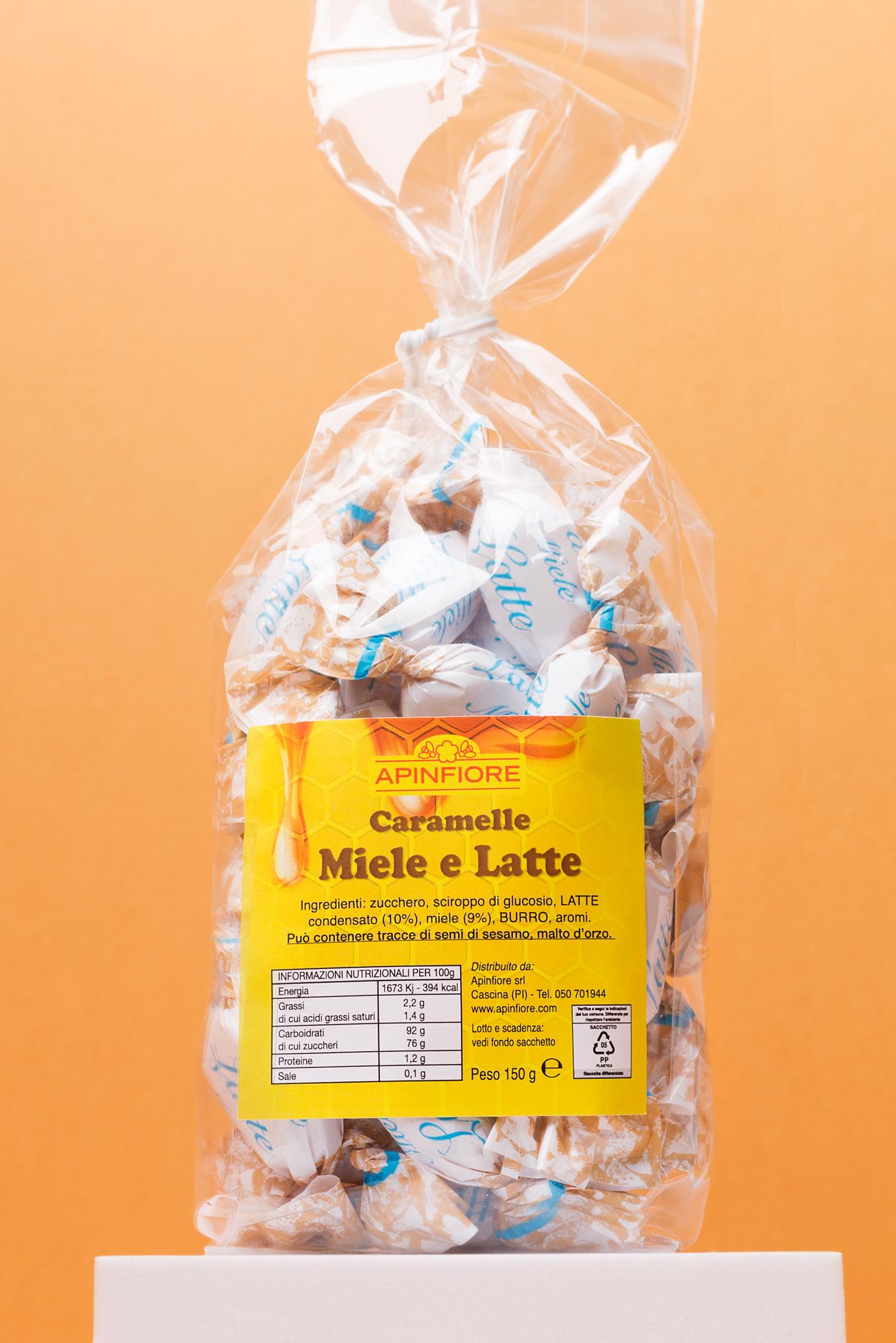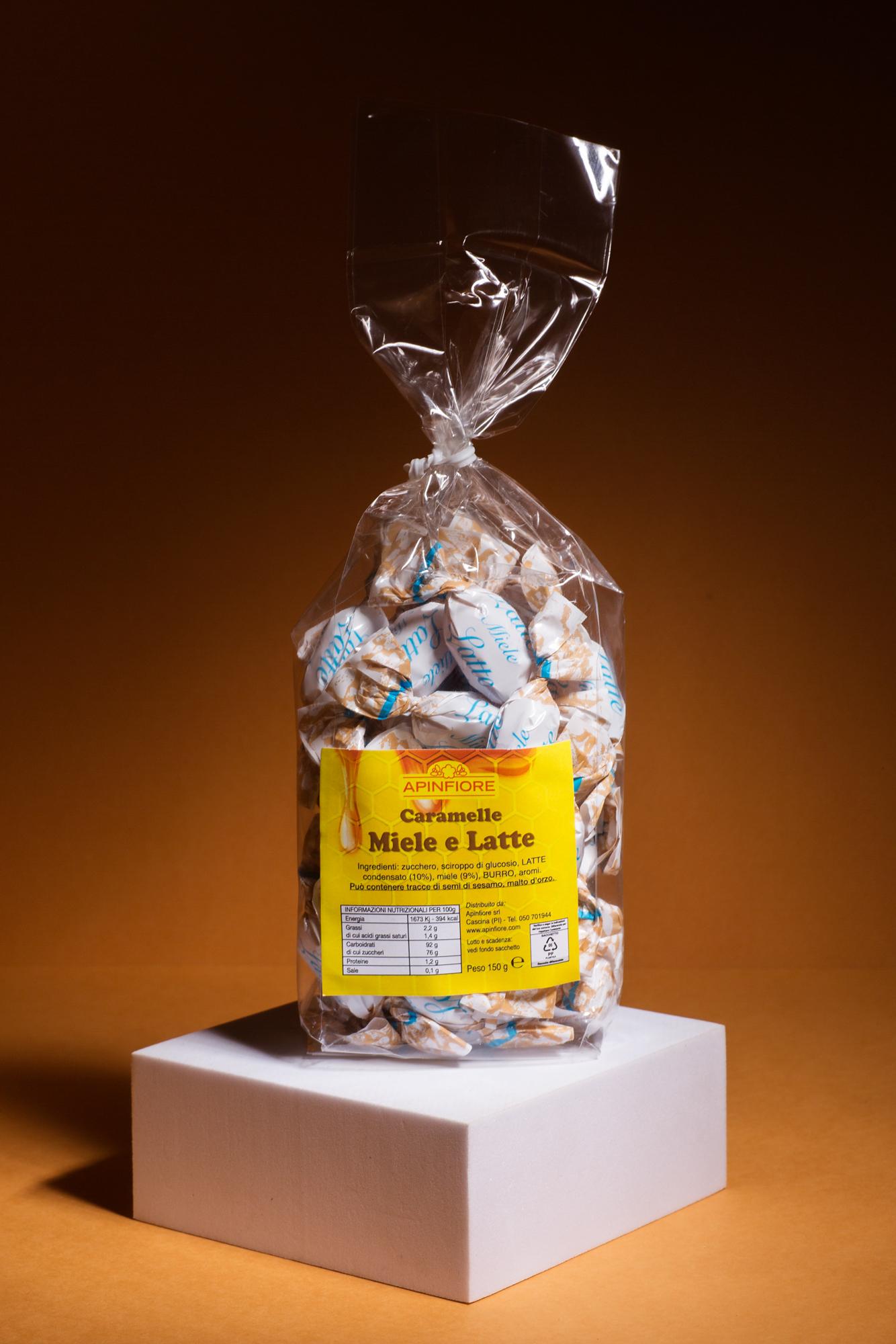 Caramelle ripiene con una goccia di miele ed Latte.