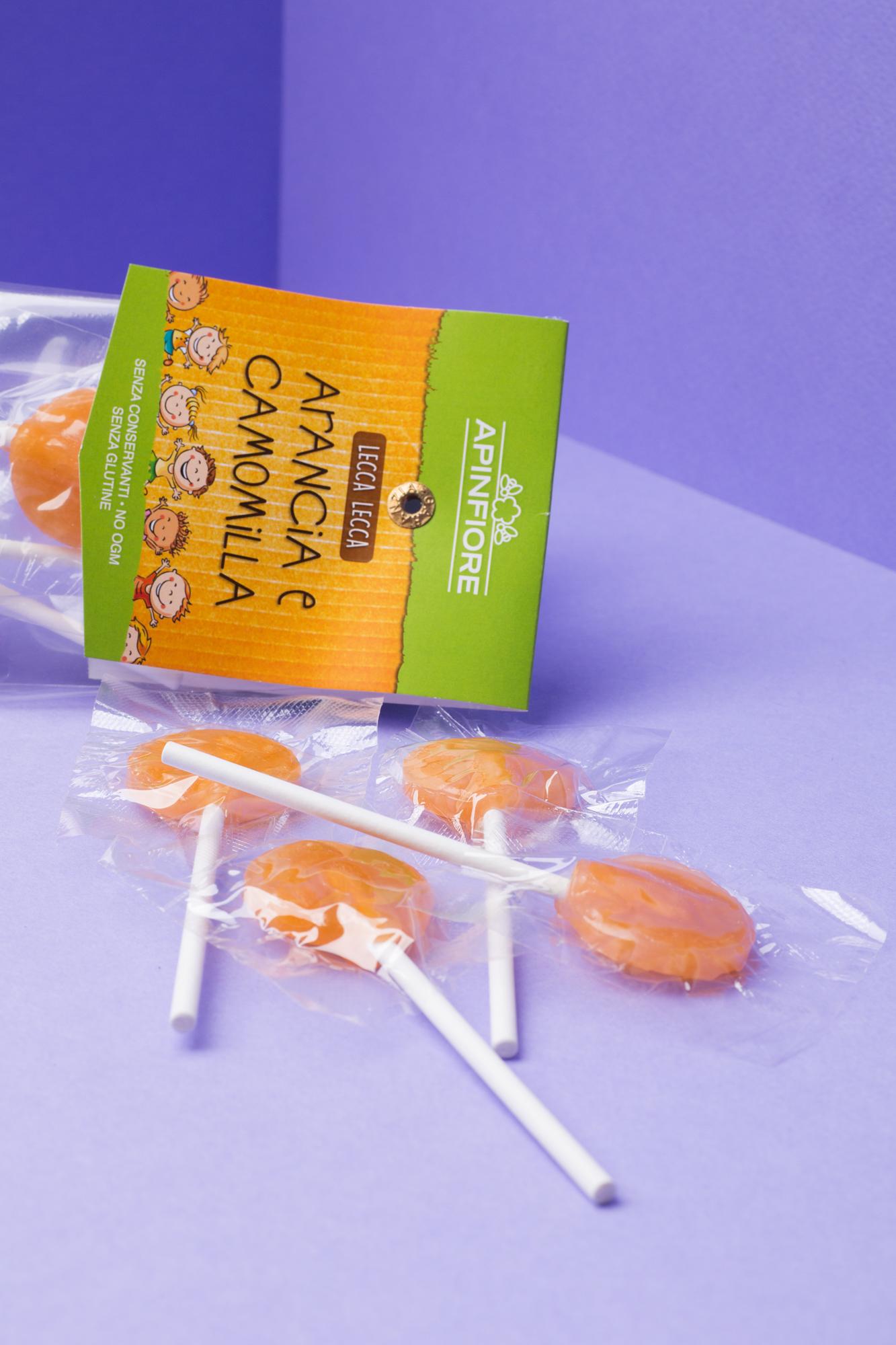 Lecca lecca arancio e camomilla, senza glutine, senza conservanti e no ogm.