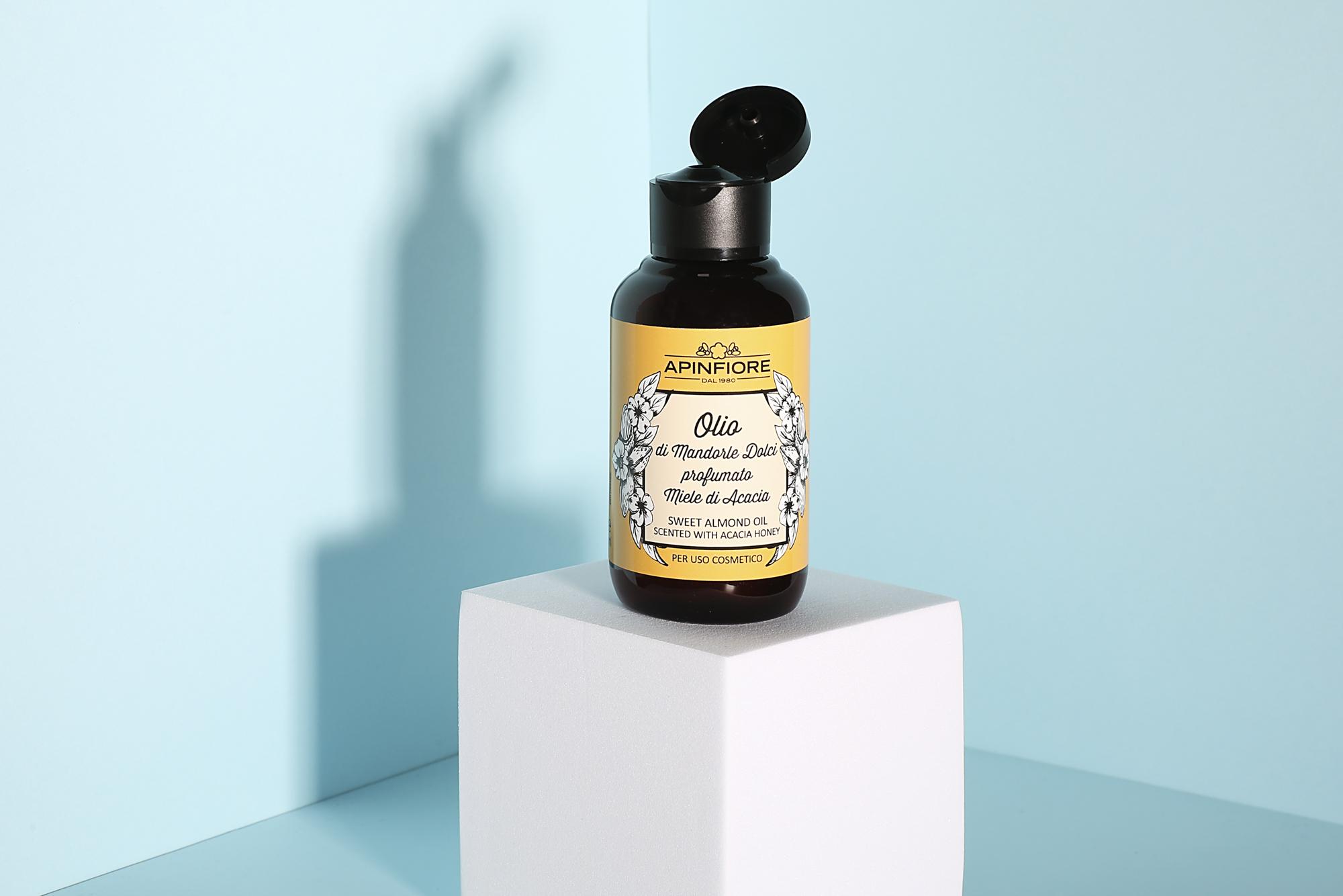 L’olio di mandorle dolci apinfiore ha una caratteristica in piu, e’ profumato al miele di acacia, che dona ancor piu dolcezza a questo straordinario olio.